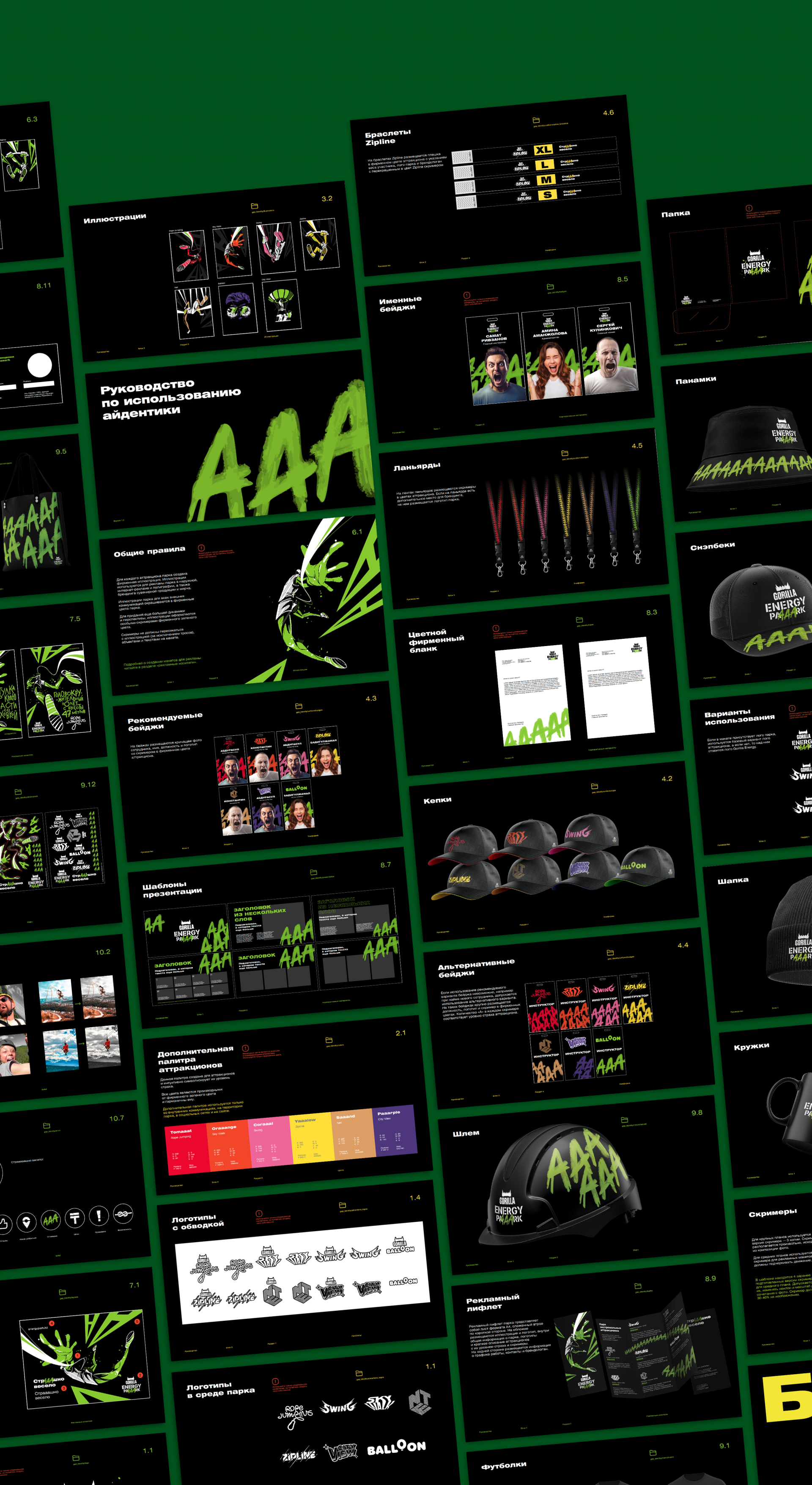 Мы разработали дерзкую иллюстрацию и логотип для каждого аттракциона, емкий информативный копирайт стал леттерингом, а сотни фоток с кричащими посетителями стали основой организованного плана продвижения в социальных сетях. Для каждой детали айдентики были созданы простые правила, описанные в подробном руководстве.